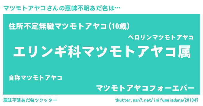 | 肩書あだ名 | 『マツモトアヤコ船長』 |