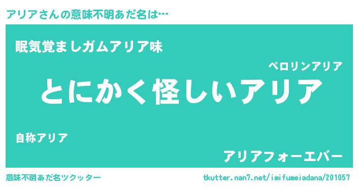 | ヒーロー風カッコイイあだ名 | 『暗黒騎士アリ』『天空の使者アリア』 |