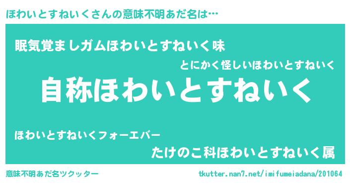 | 欧米人風あだ名 | 『ケンブリッジほわいとすねいく』 |