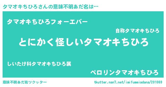 | 欧米人風あだ名 | 『ウサインタマオキちひろ』 |