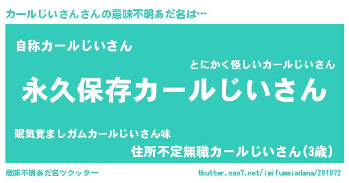 | 胡散臭い通販商品みたいなあだ名 | 『絶対に幸福をもたらす水素水…その名も「カールじいさん」』 |