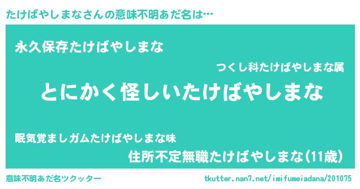 | ヘコむあだ名 | 『たけを』『たけばやしまな(小並感)』 |