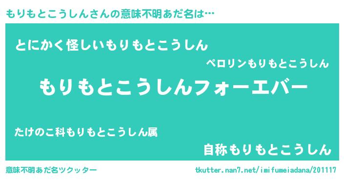 | 男性向けラノベタイトル風あだ名 | 『やはりもりもとこうしんの青春ラブコメはまちがっている 』 |
