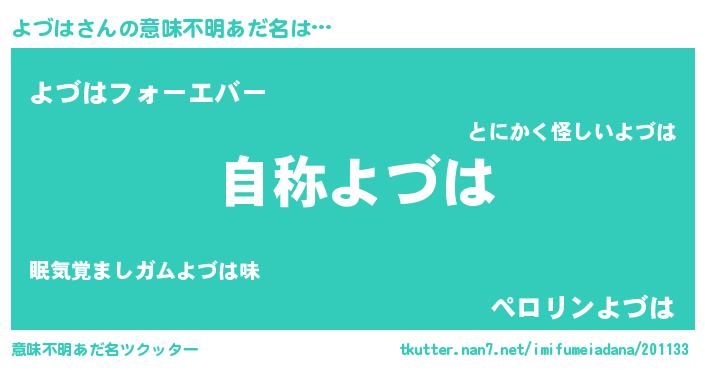| 男性向けラノベタイトル風あだ名 | 『Re:よづはから始める異世界生活』 |