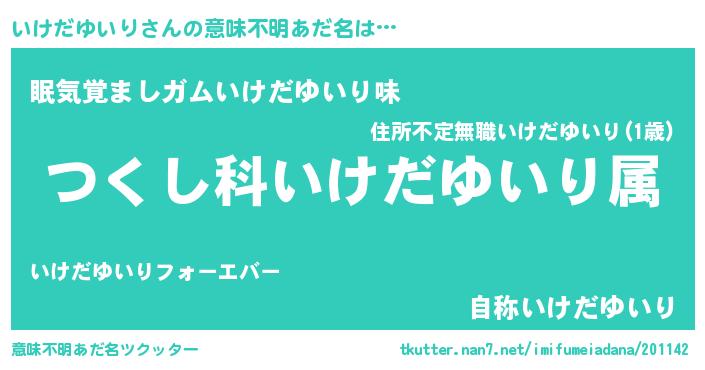 | 男性向けラノベタイトル風あだ名 | 『いけだゆいり~年齢イコール彼女いない歴の魔法使い~』 |