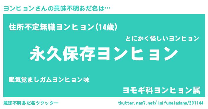 | ピコ太郎風あだ名 | 『ピコヨ郎』『ヨン一郎』『ヨヨ太郎』 |