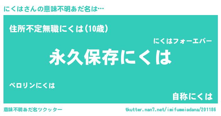 | 女子向けラノベタイトル風あだ名 | 『にくはの契約王妃』『闇のにくは』 |