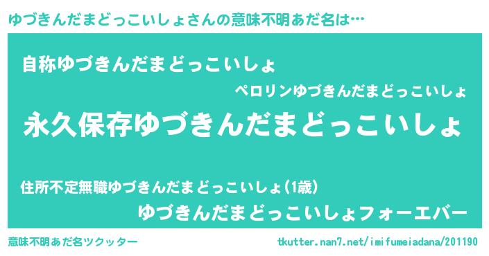 | 伝説のあだ名 | 『古文書に記された吟遊詩人ゆづきんだまどっこいしょ』 |