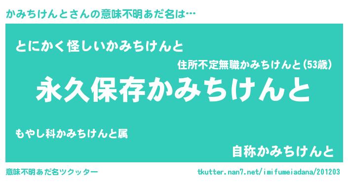 | ヘコむあだ名 | 『かみちけんと(小並感)』『かみっちょ』 |