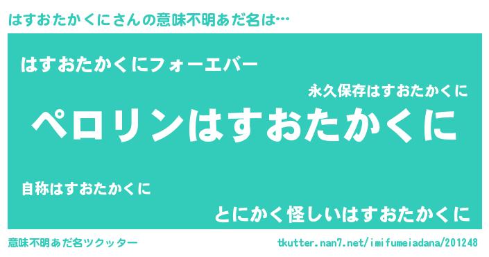 | ヒーロー風カッコイイあだ名 | 『スーパーハスオタカクニ』 |