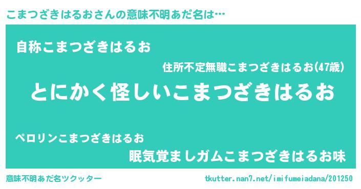 | ポケモン風あだ名 | 『コマゴンZ』『ヒコマツザキハルオ』 |