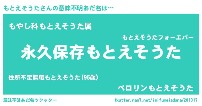 | 胡散臭い通販商品みたいなあだ名 | 『前代未聞の健康食品…その名も「もとえそうた」』 |