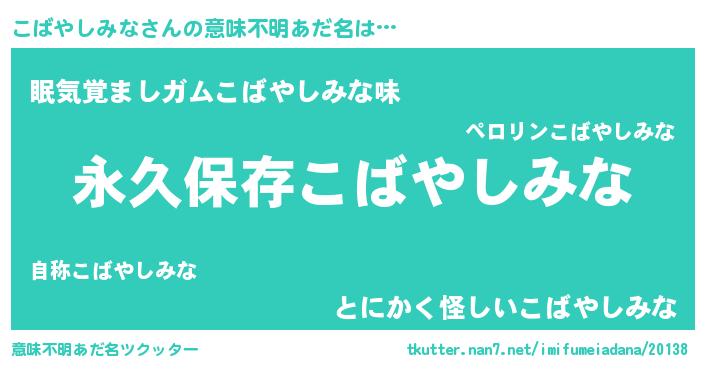 | 男性向けラノベタイトル風あだ名 | 『こばやしみなという概念が存在しない退屈な世界 』 |