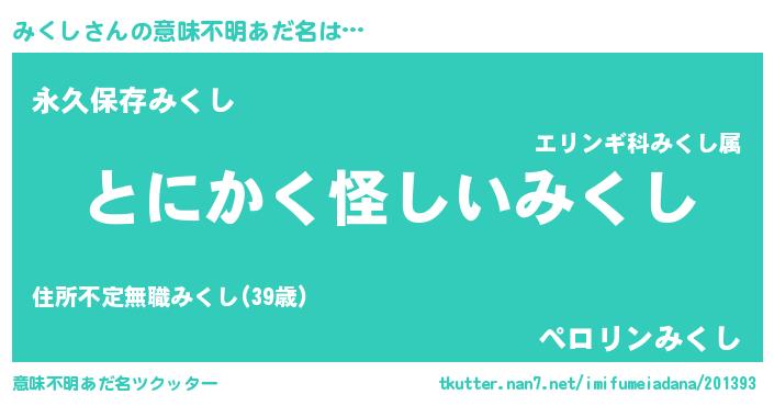 | ポケモン風あだ名 | 『ヒミクシ』『ゼニミク』『ミークイ』 |