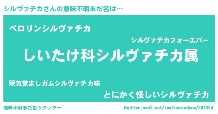 | 男性向けラノベタイトル風あだ名 | 『シルヴァチカスレイヤー』 |