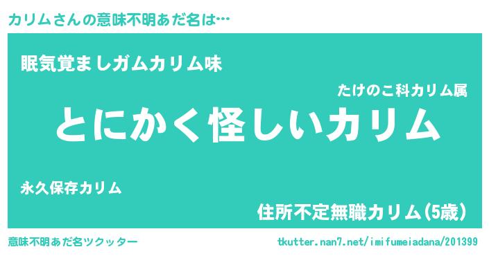 | 胡散臭い通販商品みたいなあだ名 | 『全米が絶賛したサプリメント…その名も「カリム」』 |