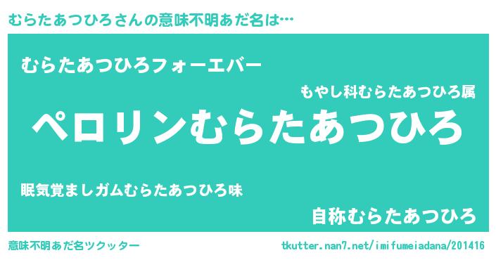| ヒーロー風カッコイイあだ名 | 『スーパームラタアツヒロ』 |