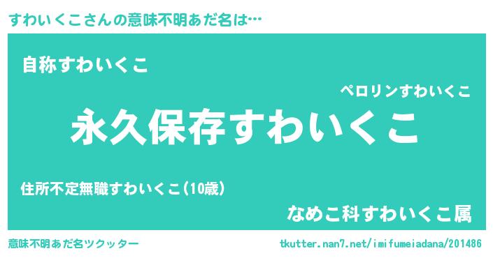 | 胡散臭い通販商品みたいなあだ名 | 『来世でも幸せになれる水素水…その名も「すわいくこ」』 |