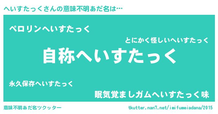 | 肩書あだ名 | 『へいすたっく総統』『へいすたっく社長』 |