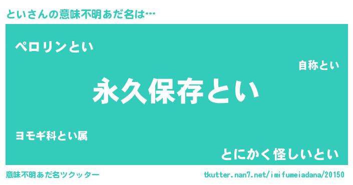 | 胡散臭い通販商品みたいなあだ名 | 『絶対に幸福をもたらす健康食品…その名も「とい」』 |