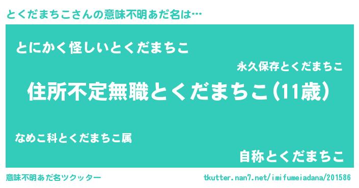 | 男性向けラノベタイトル風あだ名 | 『この素晴らしい世界にとくだまちこを!』 |