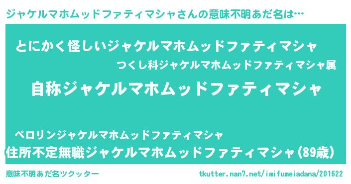 | 女子向けラノベタイトル風あだ名 | 『ジャケルマホムッドファティマシャなんてお断りですっ。』 |