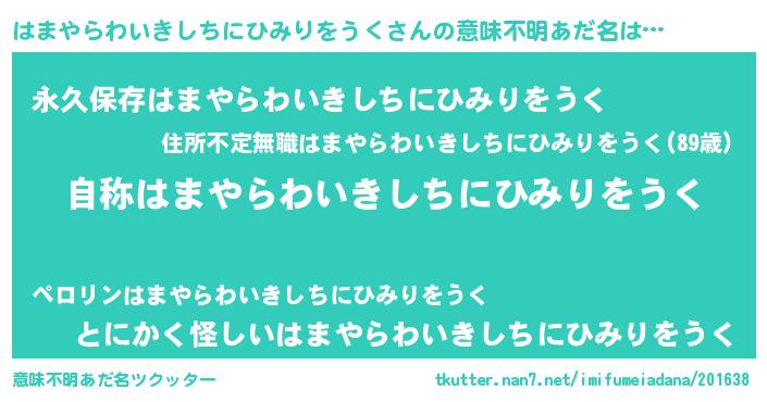 | ヘコむあだ名 | 『はまやらわいきしちにひみりをうく(苦笑)』 |