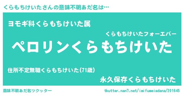 | 男性向けラノベタイトル風あだ名 | 『くらもちけいたに滅ぼされるだけの簡単なお仕事です』 |
