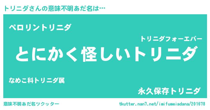 | ヒーロー風カッコイイあだ名 | 『暗黒騎士トリ』『スーパートリニダ』 |