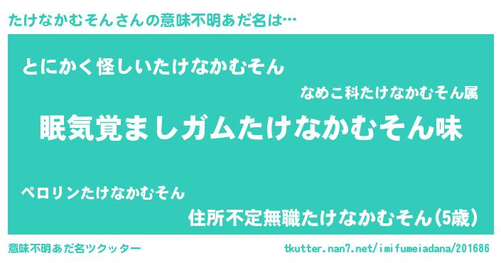 | 男性向けラノベタイトル風あだ名 | 『おまえをオタクにしてやるから、俺をたけなかむそんにしてくれ! 』 |