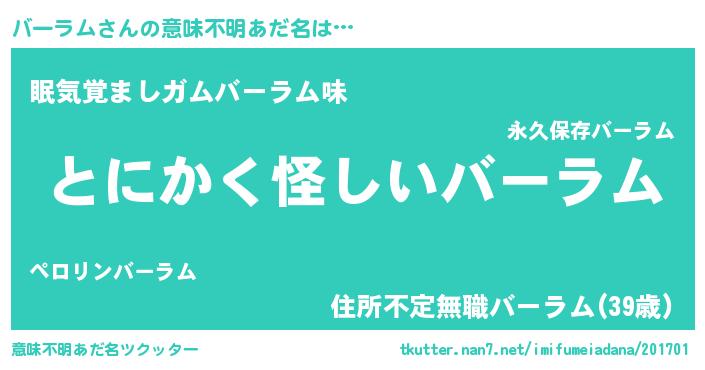 | ヘコむあだ名 | 『バーっちょ』『バーラム(爆)』 |
