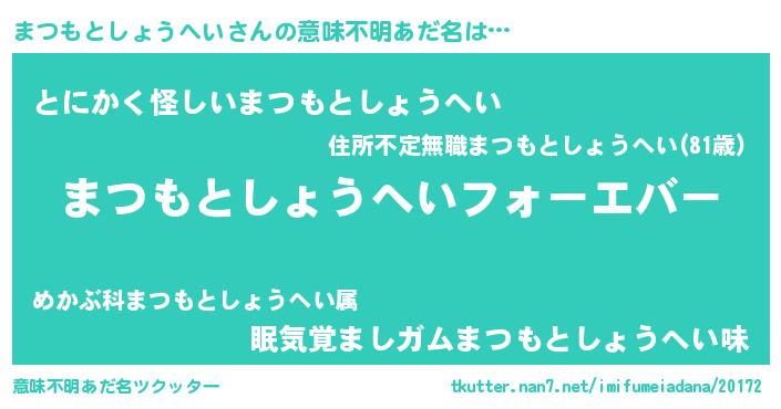 | ポケモン風あだ名 | 『マツモダネ』『ヒマツモトショウヘイ』 |