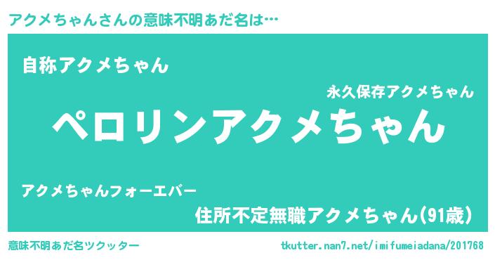 | 可愛いあだ名 | 『アんアん』『アクうちぇる』 |