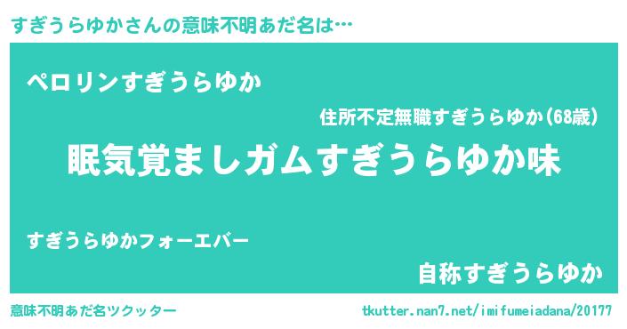 | 胡散臭い通販商品みたいなあだ名 | 『100人中100人が認めたマグネット磁石…その名も「すぎうらゆか」』 |