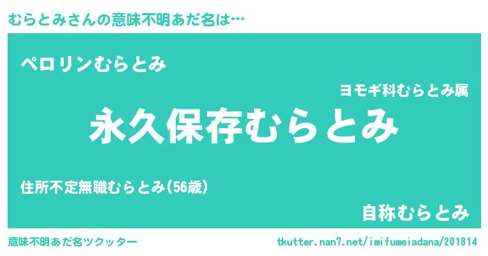 | 胡散臭い通販商品みたいなあだ名 | 『絶対に幸福をもたらす水素水…その名も「むらとみ」』 |