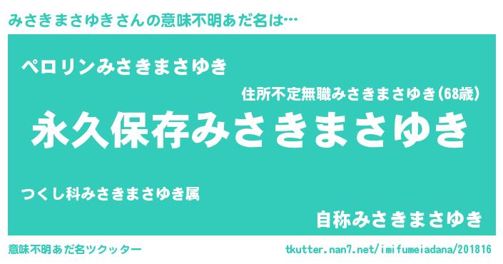 | 男性向けラノベタイトル風あだ名 | 『みさきまさゆきという概念が存在しない退屈な世界 』 |