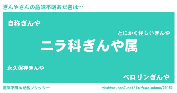 | 欧米人風あだ名 | 『ぎんや・ステッグマイヤー』 |