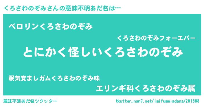 | 男性向けラノベタイトル風あだ名 | 『くろさわのぞみに滅ぼされるだけの簡単なお仕事です』 |