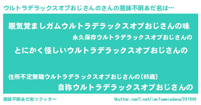| 女子向けラノベタイトル風あだ名 | 『ウルトラデラックスオブおじさんのは平凡を望む』 |