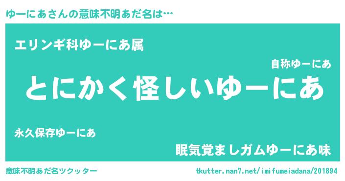 | 女子向けラノベタイトル風あだ名 | 『ゆーにあは平凡を望む』『闇のゆーにあ』 |