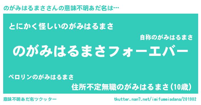 | 欧米人風あだ名 | 『のがみはるまさクリステル』 |