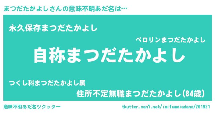 | 欧米人風あだ名 | 『ケンブリッジまつだたかよし』 |