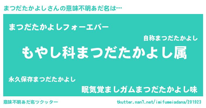 | 男性向けラノベタイトル風あだ名 | 『まつだたかよしに滅ぼされるだけの簡単なお仕事です』 |