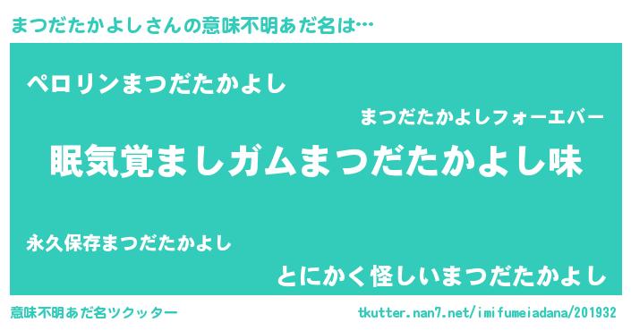 | 欧米人風あだ名 | 『ダニエルまつだたかよし』 |
