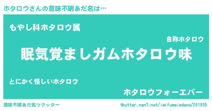 | 男性向けラノベタイトル風あだ名 | 『ノーゲーム・ノーホタロウ』 |