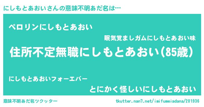 | 料理風あだ名 | 『にしもとあおいのカルパッチョ風』 |