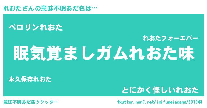 | 男性向けラノベタイトル風あだ名 | 『おまえをオタクにしてやるから、俺をれおたにしてくれ! 』 |