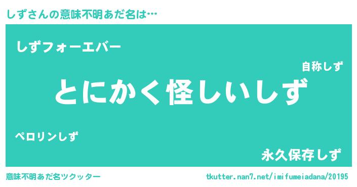 | 胡散臭い通販商品みたいなあだ名 | 『伝統あるサプリメント…その名も「しず」』 |