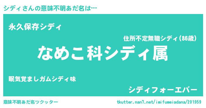 | ヘコむあだ名 | 『シディ(笑)』『酢こんぶ』 |