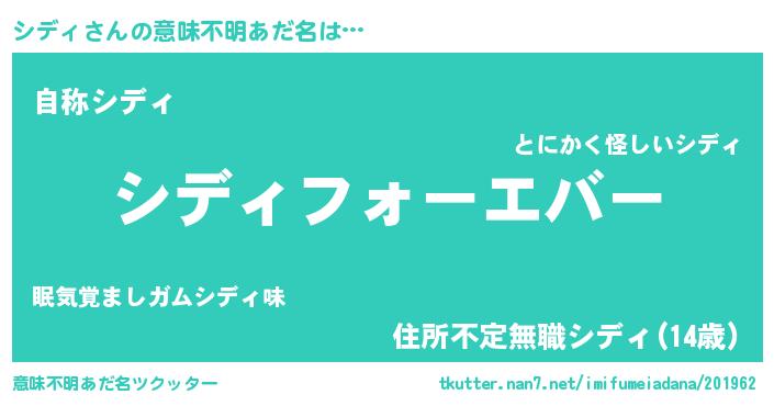 | 女子向けラノベタイトル風あだ名 | 『シディの雑貨屋さん』『闇のシディ』 |